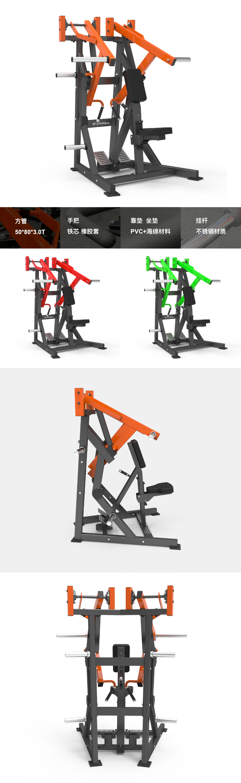 BFT-E07 BFT-E07 坐式拉背訓練器 尺寸:1430×1280×1700mm 淨重: 152kgs 主管:方管50*80*3.0T 手把:φ25 鐵芯+TPV橡膠套 靠墊/坐墊:PVC+海綿材料 掛杆:不鏽鋼材質 最大承重:300kg 獲取報價