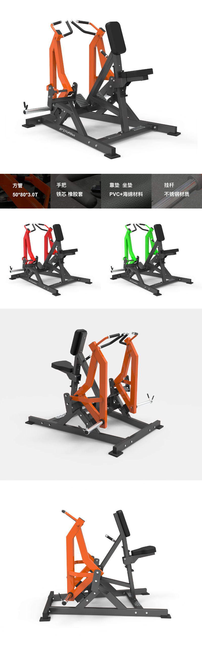 BFT-E14 BFT-E14 坐式低位拉背訓練器 尺寸:1530x1560x1350mm 淨重:128kgs 主管:方管50*80*3.0T 手把:φ25 鐵芯+TPV橡膠套 靠墊/坐墊:PVC+海綿材料 掛杆:不鏽鋼材質 最大承重:300kg 獲取報價