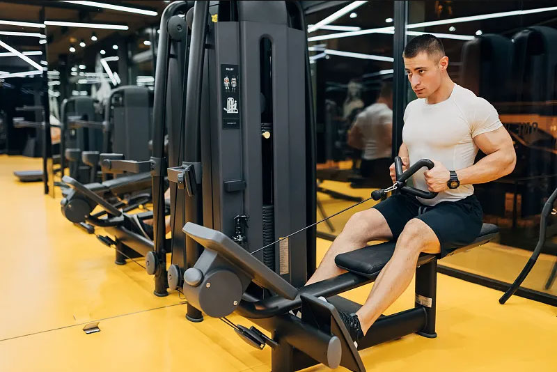 坐姿劃船器是一種模擬劃船動作的器械,通過使用坐姿劃船器,可以有效地鍛煉到背部的斜方肌和菱形肌。