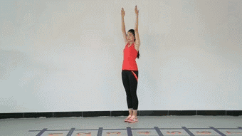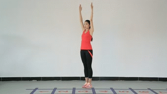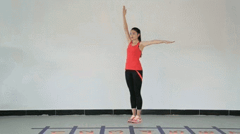 動作解析:由單手上舉變雙手上舉,看上去動作變化不大,卻大大增肌了動作難度,對於腿部和腰腹的力量、穩定性、協調性都是極高要求。