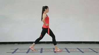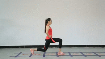 動作解析:首先雙腳平行站立,向前邁出一大步下蹲至前腿膝關節呈90度,然後迅速蹬起至起始位置,不做停頓,向後後退一大步,再次發力蹬起至起始位置。這是前後向弓箭步結合的練習,向前鍛煉伸出腿的力量,向後則鍛煉支撐腿的力量,也就是說這一個動作可以同時鍛煉雙下肢的力量,也對於身體協調性提出了較高要求。