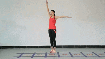 動作解析:首先采取前後腳站立,收腹挺胸,雙手叉腰,然後全力向上縱跳,在空中交叉換腿,穩定落地不做停頓,再次跳起。跳躍動作對下肢爆發力是極好的訓練。