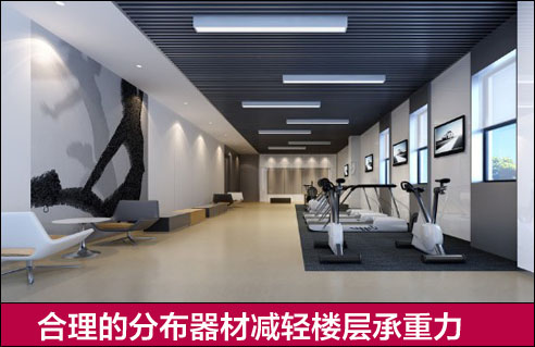 2.樓層的承重,健身房裝修分區域的時候一定要注意樓層的承重問題,一些較大的器材對於樓層的壓力很大。