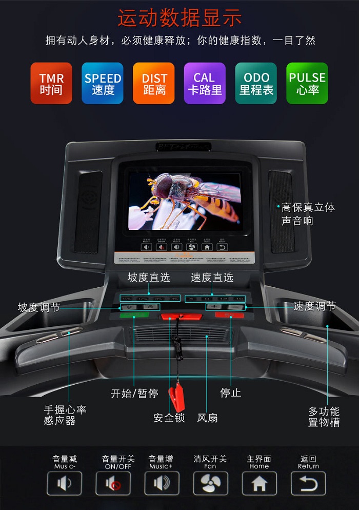 首先在大小上,大多數跑步機的運動麵積都相似,平均為200厘米長、90厘米寬。所以要選購跑步機,就得考慮自家是否有充足的空間可供放置。像羞羞视频APP下载大全跑步機BCT04展開尺寸236.5*95*152.5cm