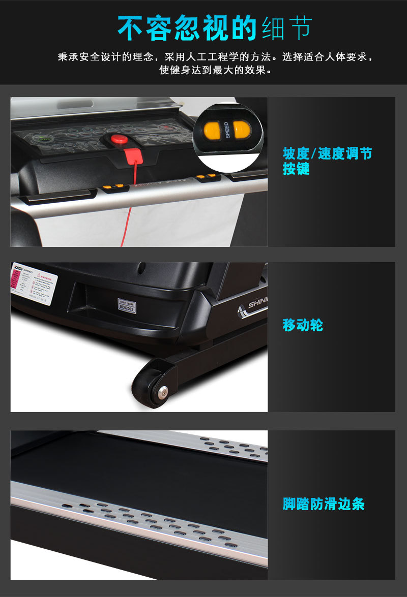 32mm厚,520mm超寬的德國品牌西格林跑帶並帶自動漲緊專利係統